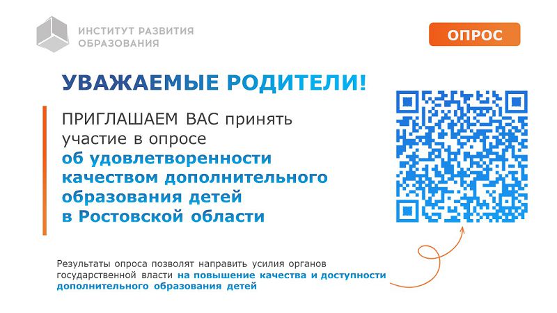 Просим пройти опрос об удовлетворенности качеством дополнительного образования детей в Ростовской области: https://forms.yandex.ru/u/6992b60c84227ca874d424aa